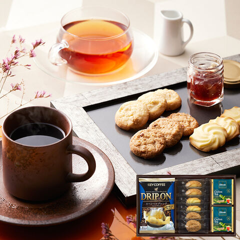 ■キーコーヒードリップオンと3種類のクッキーに紅茶と、ティタイムを楽しく過ごせるギフトです
