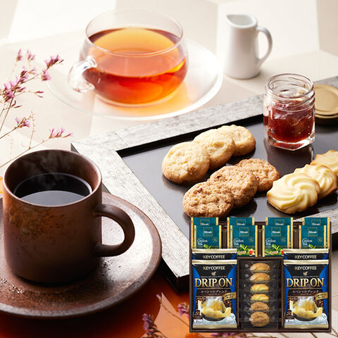 ■キーコーヒードリップオンと3種類のクッキーに紅茶と、ティタイムを楽しく過ごせるギフトです