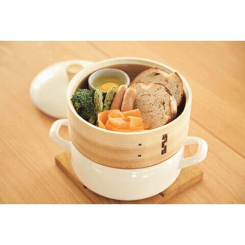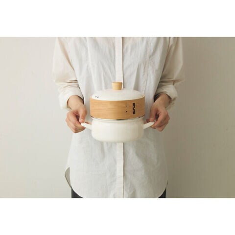●本体=ホーロー用鋼板・天然木(ラバー)、せいろ=竹、杉、桜樹皮、シリコーンゴム