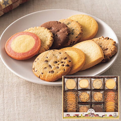 ●クッキー(チョコレートチップ×10、アーモンドチョコチップ・オールドファッションシュガー×各9、ダブルチョコナッツ・キャラメルカスタード・苺りんぐ・紅茶・ヨーグルト・セサミ×各5)計58枚※商品の性質上割れやすい商品となっております。