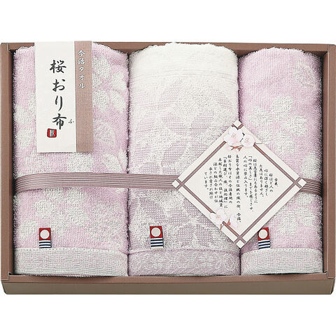 桜おり布 フェイス・ウォッシュタオルセット パープル IS9625PU 【_