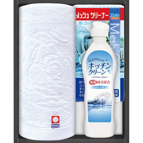 ●ウォッシュタオル(約30×34cm)・キッチンクリーン250ml・メッシュクリーナー×各1