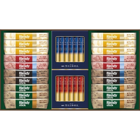 ●ブレンディスティック(カフェオレ14g×6・ミルクたっぷり14g×6・甘さなし11.4g×4・ヘーゼルナッツオレ11g×4)、ちょっと贅沢な珈琲店スティックブラック(ブラジルブレンド・モカブレンド)各2g×7