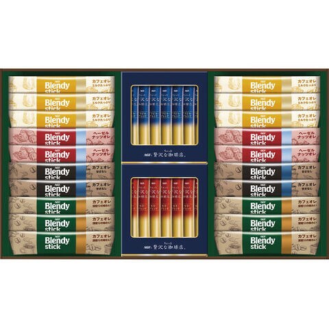 ●ブレンディスティック(カフェオレ14g×6・ミルクたっぷり14g×6・甘さなし11.4g×4・ヘーゼルナッツオレ11g×4)、ちょっと贅沢な珈琲店スティックブラック(ブラジルブレンド・モカブレンド)各2g×7