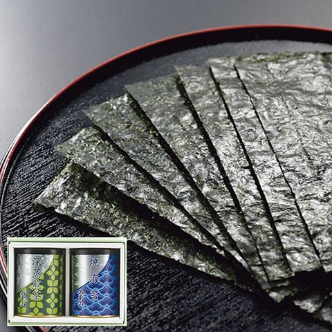 ■お食事サイズにカットされた焼海苔と渋みの少ない深蒸し煎茶の詰合せです。
