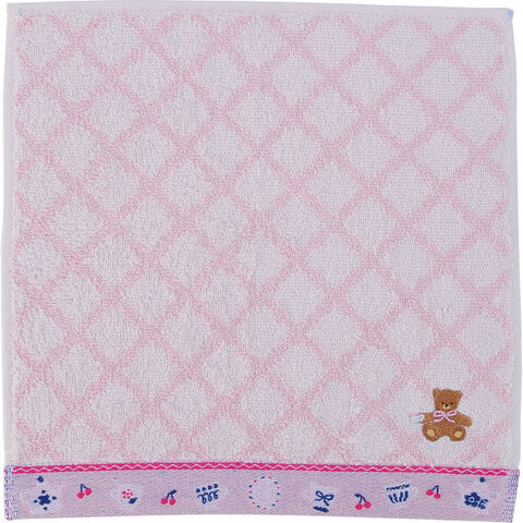 ロッティ 婦人タオルハンカチ チェック×くま刺繍ピンク RTT-64 PI (メール便/同梱不可)【_