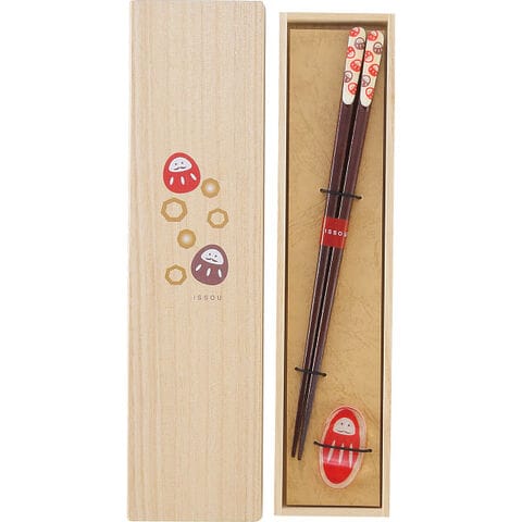 吉兆桐箱入 箸・箸置揃 夢だるま 黒猫と椿 39286 【_