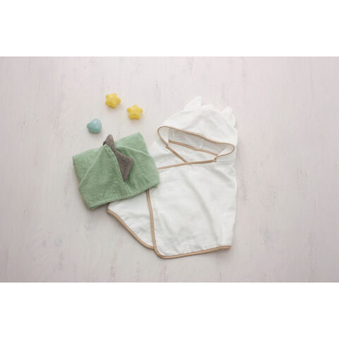 ■オーガニックコットン100%のキュートなねこの耳付きバスポンチョ。ちいさなお子様でも使いやすい短めサイズです。ねこのポンチョは表は通気性が良く肌触りのやさしい二重ガーゼ、裏は吸水性の良いパイルのふたつの良さを兼ね備えました。