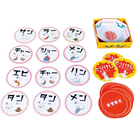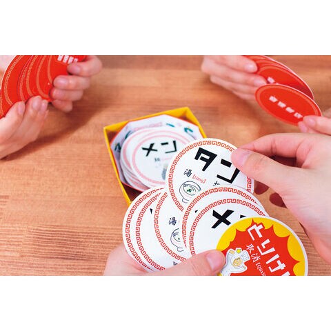 ■「タン」や「メン」「チャー」などの具材カードを、中華料理名を作るようにスピード勝負で人に割り込みながら中央のトレイに重ねて、いち早く手札を無くすカードゲームです。