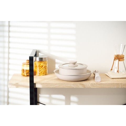 ●本体=アルミ合金(内面セラミックコーティング加工・外面焼き付け塗装)、底部=ステンレス、ハンドル=フェノール樹脂、蓋=強化ガラス
