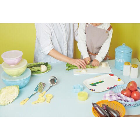 ●(包丁)刀身=ステンレス刃物鋼・柄=ABS樹脂・(まな板)本体=ポリプロピレン・縁部=ポリプロピレン、熱可塑性エラストマー・(あわだて・マッシャー・おたま・ターナー)金属部=ステンレススチール・ハンドル=ポリプロピレン・(スクレッパー)熱可塑性エラストマー・ポリプロピレン