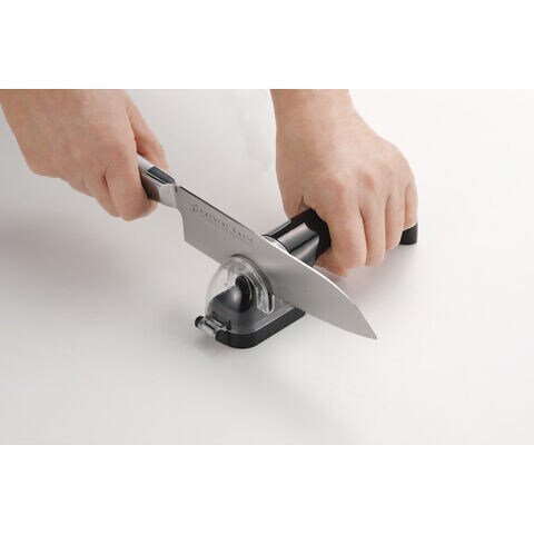 ■手前に引くだけで、簡単に切れ味復活。カバーが開閉できるので、衛生的。