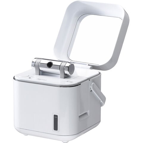■イオン化された微細スチームをお肌の角質層へとどけるフェイススチーマー。可動式ノズルで楽な姿勢で胸元~額までの範囲をケア。フタの裏のミラーでスチームの当たり具合を確認できます。フタを閉めれば、スッキリしたスクエアフォルムになります。