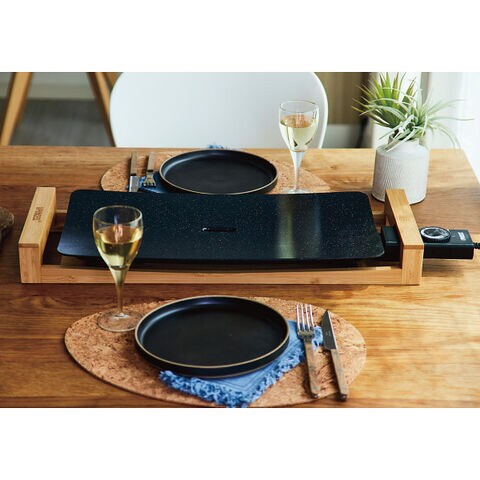 ■デザイン賞受賞の美しすぎるホットプレートの新色です。美味しい、ヘルシー、お手入れ簡単。遠赤外線効果で野菜、肉、海鮮など、あらゆる素材本来の美味しさに出会えます。オイルフリー調理可能で、中央のスリットが余分なオイルを逃してくれてヘルシー。汚れはサッと一拭きなどお手入れも簡単です。