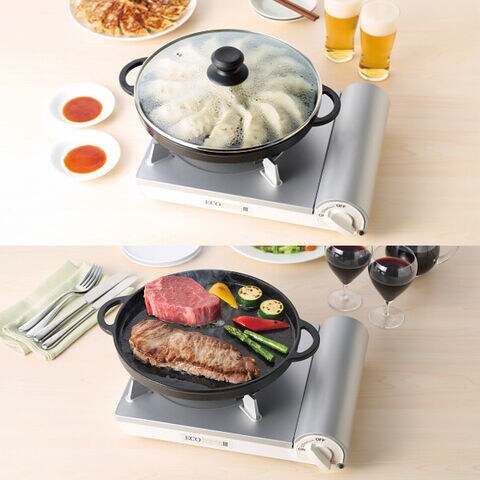 ■大きな鍋も使えるコンロ。土鍋10号が使え、内炎式バーナー採用で効率的に使用できます。