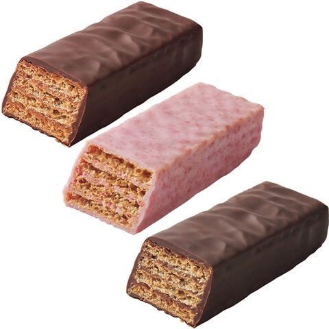 ■サクサクと軽い食感のゴーフレット生地にクリームをサンドし、チョコレートでコーティング。