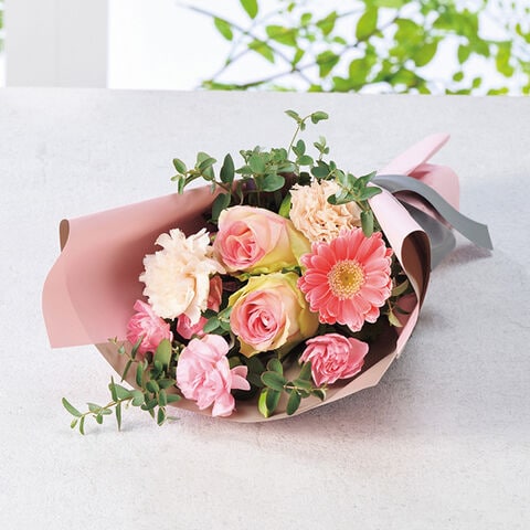 ■ピンク系の花の可愛いブーケです。ピンクのお花が大好き!そんなお母さんにプレゼントにおすすめの、ピンクを主役にしたブーケをです。それぞれの異なったピンク色が美しく、とても鮮やかに仕上がっています。