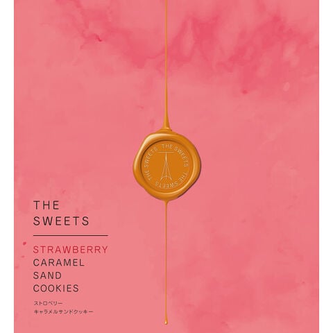 ■あまおう苺のフリーズドライを混ぜた濃厚なラングドシャ生地でキャラメルとチョコレートをサンドしました。