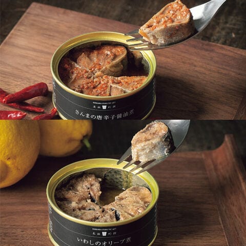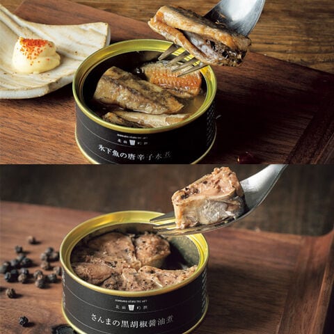●さんまの黒胡椒醤油煮95g、さんまの唐辛子醤油煮95g、いわしのオリーブ煮レモン仕上げ95g、真鱈子甘辛煮85g、銀ガレイえんがわ醤油煮95g、氷下魚の唐辛子水煮90g※包装済み商品です。