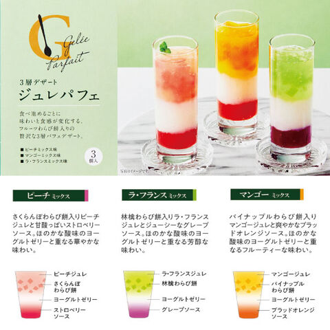 ●ピーチミックス味101g×3、マンゴーミックス味101g×3、ラ・フランスミックス味101g×2