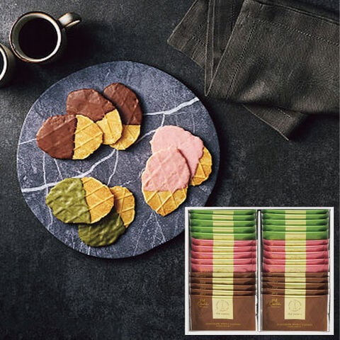 ■サクッと軽い食感のワッフルクッキーに、3種類のチョコをコーティング。