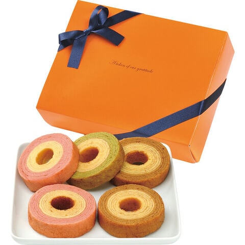 ●2層バウムクーヘン(キャラメル&ミルク・ストロベリー&ミルク×各2、抹茶&ミルク×1)