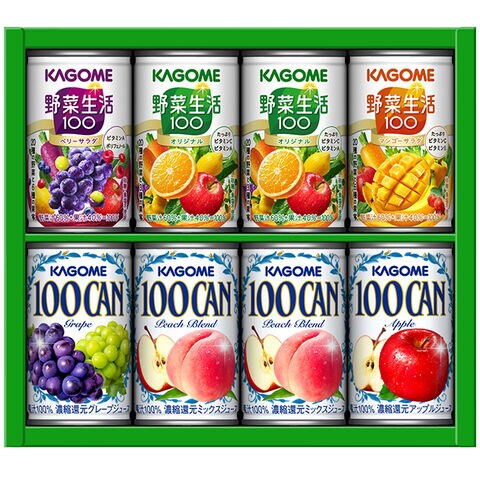 ■100%フルーツジュースの「100CAN」と野菜&フルーツの美味しさが人気の「野菜生活100」を詰合せました。フルーツと野菜の美味しさが楽しめるファミリーギフトです。