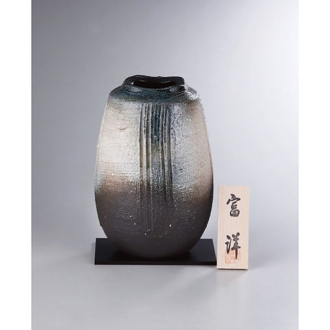 信楽焼 白泥青窯変花瓶 sha-235 【_