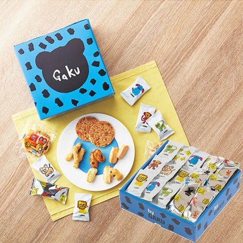 ■自閉症アーティストのGAKUさんの絵をパッケージに使用した、おかきとおせんべいのギフトです。