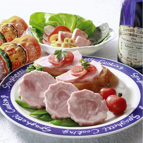 岐阜県郡上市にある明宝特産物加工株式会社が、昭和28年から製造するプレスハムで、良質な国産豚肉を100%使用し、保存料未使用で添加物も極力使用していないことが特長です。ハムの醍醐味たっぷり、本物の味の「明宝ハム」は食卓に、ご贈答用に喜んで頂けることでしょう。
