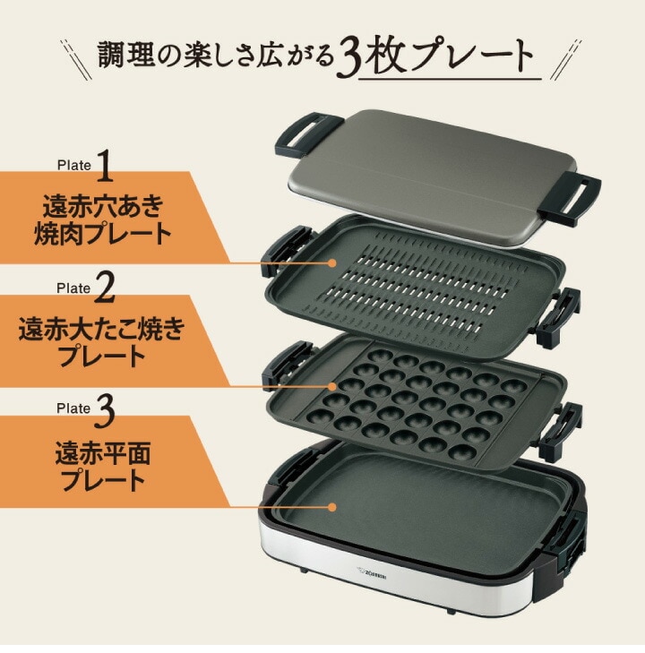 象印 ホットプレート やきやき EA-EV30-TA 3枚プレート 焼肉 たこ焼き お好み焼き 同梱不可