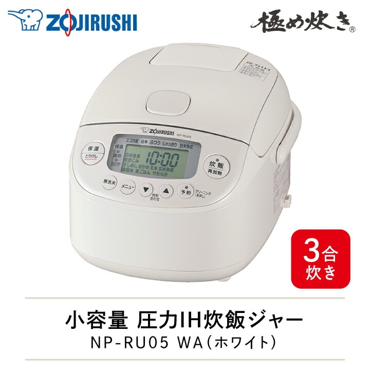 象印 小容量 圧力IH炊飯ジャー 極め炊き NP-RU05 WA 3合 ホワイト 日本製 炊飯器 3合炊き 炊き分け圧力 無洗米 麦ごはん 雑穀米 玄米 保温 黒まる厚釜 同梱不可