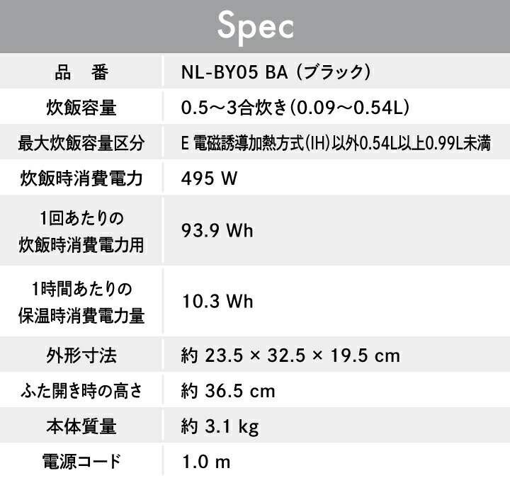 NLBY05 NL-BY05 3合 2合 1合 0.5合 豪熱沸騰 あったか再加熱 グレー液晶 お知らせメロディ タイマー 予約 0.5カップごと 目盛り 洗える内ぶた 洗米OK内釜 白米 おいしい ご飯 内釜 長時間 保温 高め保温 立つしゃもじ エコ炊飯 白米急速 炊きこみ 炊きこみごはん 炊きこみご飯 炊き込みごはん 玄米 雑穀米 麦ごはん お手入れ 電気釜 簡単 かんたん カンタン らくらく ラクラク デザイン スタイリッシュ かっこいい シンプル キッチン 台所 食事 食卓 毎日 日常 デイリー 普段使い 新生活 引越 引っ越し 買い替え 新調 家電 キッチン家電 社会人 大学生 一人暮らし 単身赴任 新築祝い 結婚祝い お祝い 黒 BLK ブラック家電 ブラックコーディネート 白物家電 家電 キッチン家電 送料無料 ZOJIRUSHI zojirushi