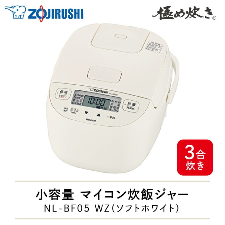 象印 小容量 マイコン炊飯ジャー 極め炊き NL-BF05 WZ 3合 ソフトホワイト 炊飯器 3合炊き 炊き分け圧力 無洗米 ご飯 麦ごはん 雑穀米 玄米 保温 黒まる厚釜 同梱不可