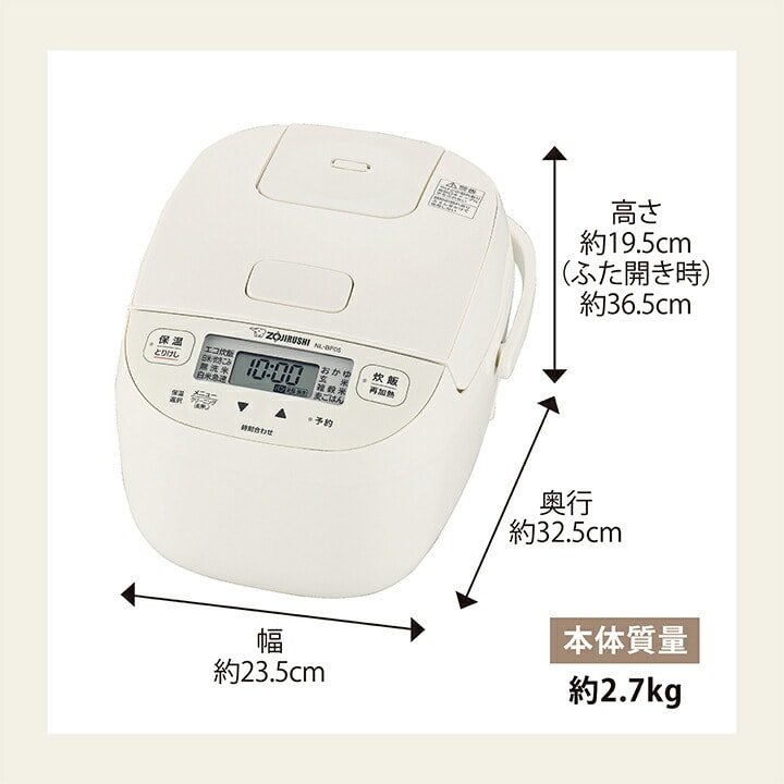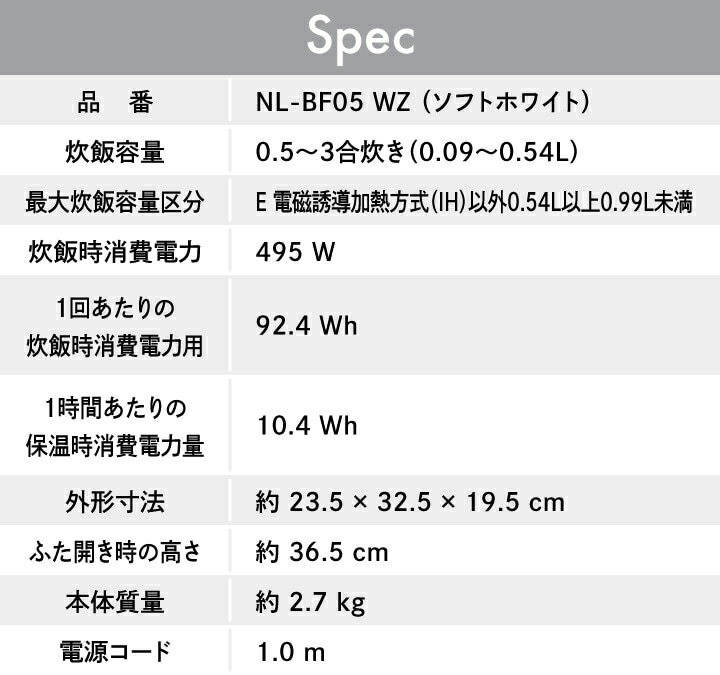NLBF05 NL-BF05 3合 2合 1合 0.5合 豪熱沸騰 あったか再加熱 グレー液晶 お知らせメロディ タイマー 予約 0.5カップごと 目盛り 洗える内ぶた 洗米OK内釜 白米 おいしい ご飯 内釜 長時間 保温 高め保温 立つしゃもじ エコ炊飯 白米急速 炊きこみ 炊きこみごはん 炊きこみご飯 炊き込みごはん 玄米 雑穀米 麦ごはん お手入れ 電気釜 簡単 かんたん カンタン らくらく ラクラク デザイン スタイリッシュ かっこいい シンプル キッチン 台所 食事 食卓 毎日 日常 デイリー 普段使い 新生活 引越 引っ越し 買い替え 新調 家電 キッチン家電 社会人 大学生 一人暮らし 単身赴任 新築祝い 結婚祝い お祝い 白 WHT ホワイトコーディネート 白物家電 家電 キッチン家電 送料無料 ZOJIRUSHI zojirushi