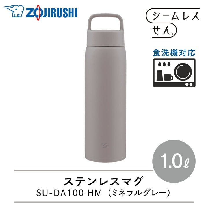 象印 ステンレスマグ SU-DA100 1.0L HM ミネラルグレー 水筒 食洗機対応 ステンレスボトル マグボトル シームレスせん シンプル ハンドル付き 保温 保冷 スポーツドリンク対応 1L シンプル