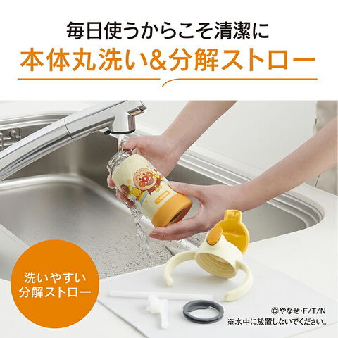 ●小さなお子さまが使いやすいこだわり設計。 ●飲みやすくてやわらかいシリコーン素材のストロー。 ●高い保冷力! ●両手でつかんで飲みやすいダブルハンドルつき! ●本体重量約190gの軽量&コンパクト。 ●さっと洗えて毎日のお手入れカンタン!「ラクリア加工+(プラス)」 ●洗いやすい分解ストロー&本体丸洗いOK! 汚れが気になる細かな部分もしっかり洗える分解ストロー。 ●ボトルを守る底カバーつき。 |