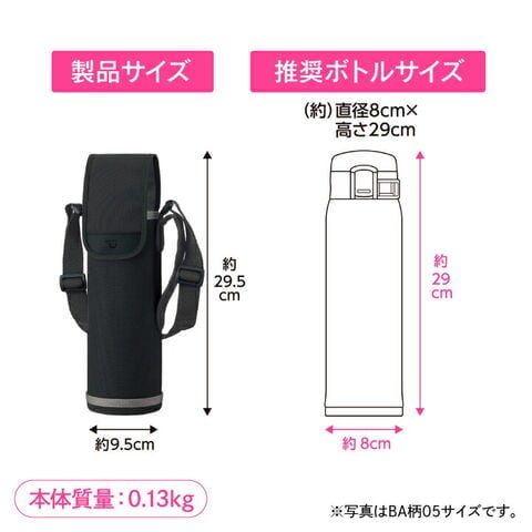 象印 ステンレスボトルカバー MC-EA05 BA ブラック 950ml用 ボトルホルダー 水筒カバー 洗濯OK ハンドル ストラップ ショルダー ベルト 肩掛け 手持ち 長さ調節可能 通学 通勤 シンプル 無地 洗える