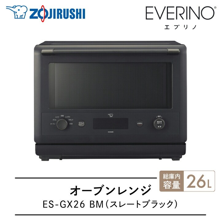 【エコバッグプレゼント】 象印 オーブンレンジ EVERINO ES-GX26 BM 26L スレートブラック エブリノ レジグリ うきレジ サクレジ オーブン 電子レンジ 赤外線センサー 陶磁器製角皿 耐熱ガラスボウル ZOJIRUSHI 象印マホービン 黒 同梱不可