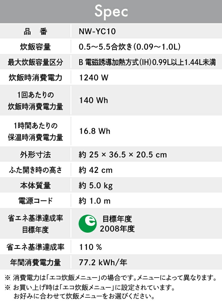 ●激しい対流がごはんの甘みを引き出す「豪熱大火力」 沸とう後も大火力を維持することで、お米の芯までしっかり熱を届けます。 ふっくらとした粒感と、甘みのあるごはんをお楽しみいただけます。 ●今日のごはんは、どの食感?選べる3通りの「炊き分け圧力」 圧力と時間を調整し、3通りの食感に炊き分け。 カレーに合う「しゃっきり」や手巻き寿司用の「すしめし」など、 お好みに合わせて選べます。 ●炊きあがりの、最後のひと押しが味の決め手「うまみ圧力蒸らし」 蒸らし工程の圧力でうまみを引き出し、さらに余分な水分を飛ばすことで、 しゃきっとふっくらしたごはんに仕上げます。 ●お手入れ簡単!毎回洗う点数はたったの2点だけ。 内ぶたは圧力ボールが無いので凹凸部分がより少なく、 本体もフラット構造なのでお手入れが簡単です。 ●30時間おいしく保温できる「うるつや保温」や 長時間保温しない方におすすめの「高め保温」メニューがあります。 ●環境に優しいバイオマスプラスチック素材を採用した 立つしゃもじ&計量カップ付き。 |