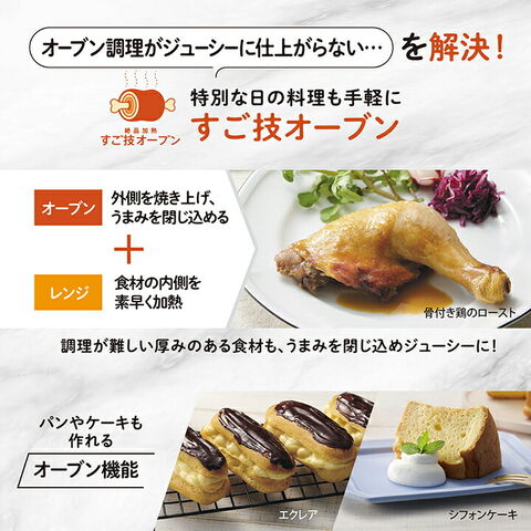 レンジで食材の芯まですばやく熱を通し、その後はグリルでこんがり調理など、