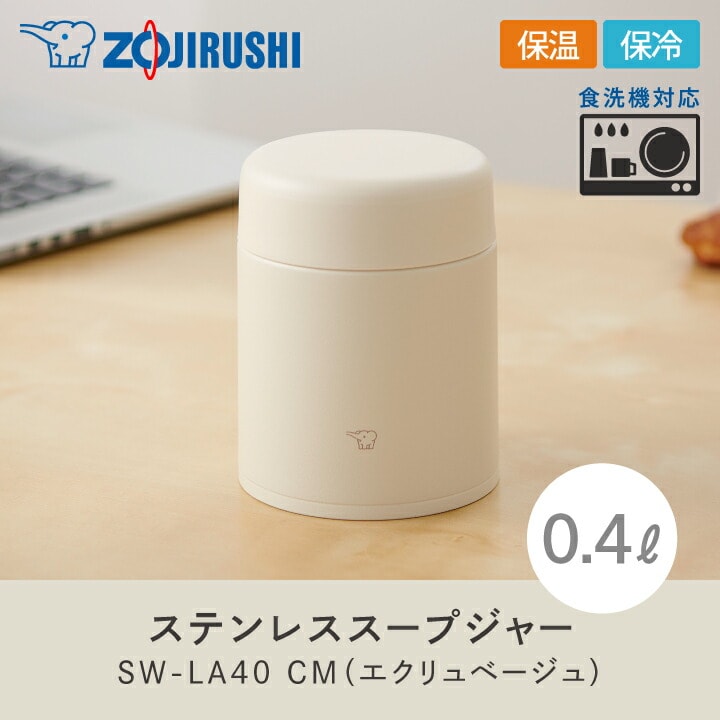 象印 ステンレススープジャー SW-LA40 0.4L CM エクリュベージュ スープジャー ランチジャー 400ml 400 広口 保冷 保温 スープ ジャー 弁当