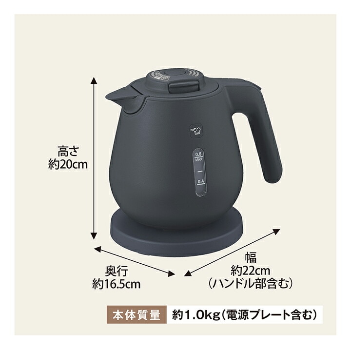 象印 電気ケトル CK-DC08 BM ソフトブラック 0.8L ケトル 電気 おしゃれ