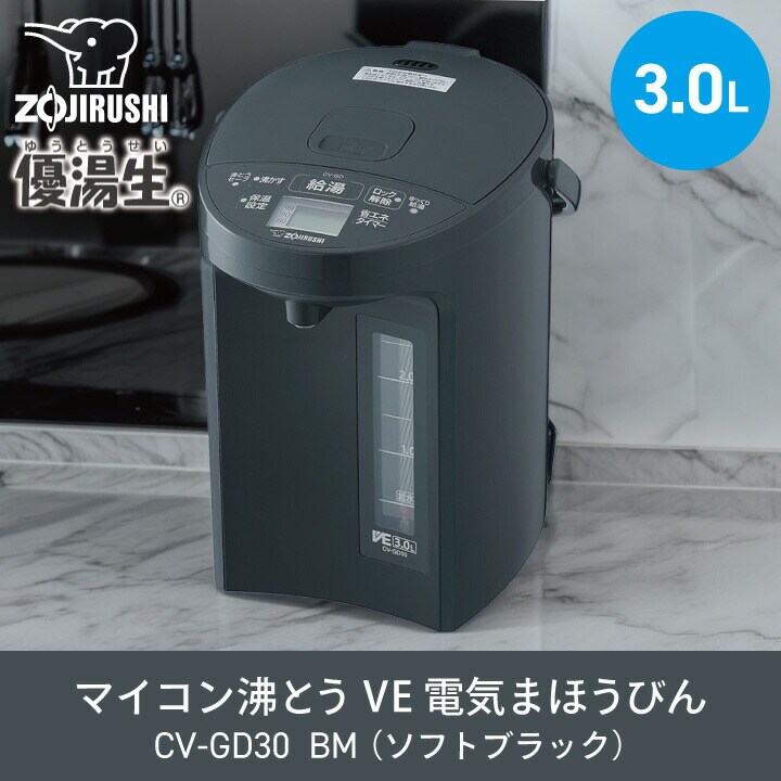 象印 VE電気まほうびん CV-GD30 BM ソフトブラック 3l 魔法瓶 保温 電気ポット ポット 優湯生 ミルク 同梱不可