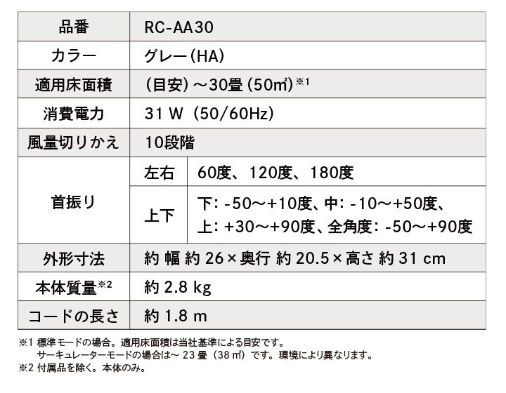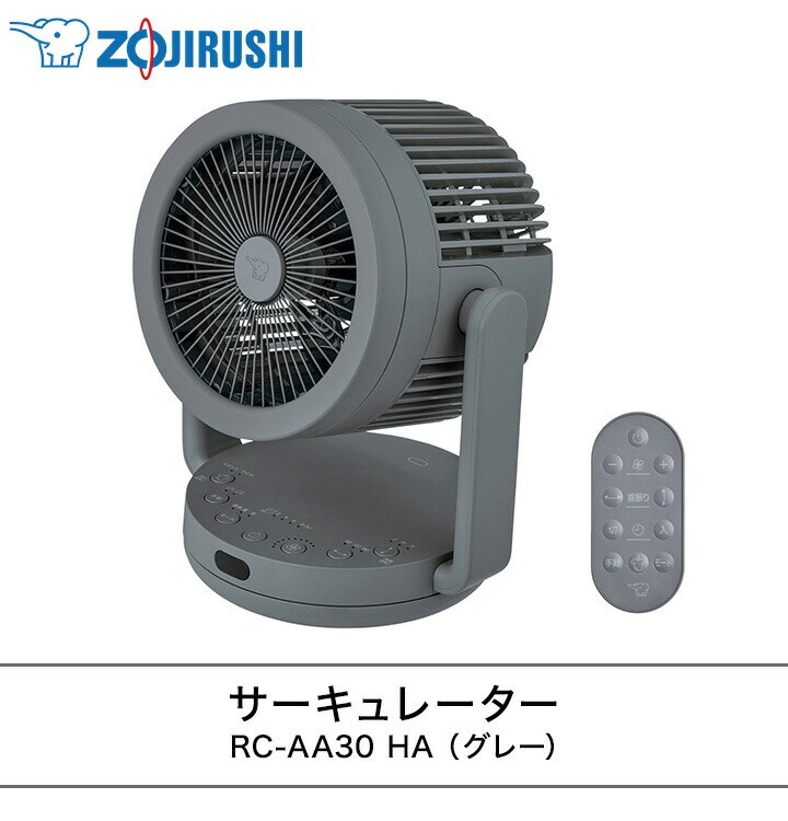 象印 サーキュレーター RC-AA30 HA グレー DCモーター 静音 扇風機 リモコン付き お手入れ簡単 冷房効率アップ おまかせ機能