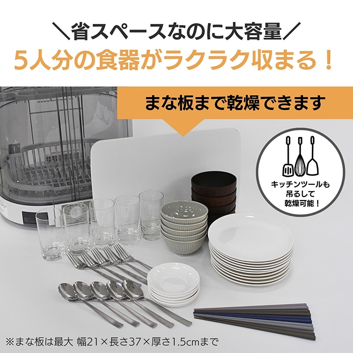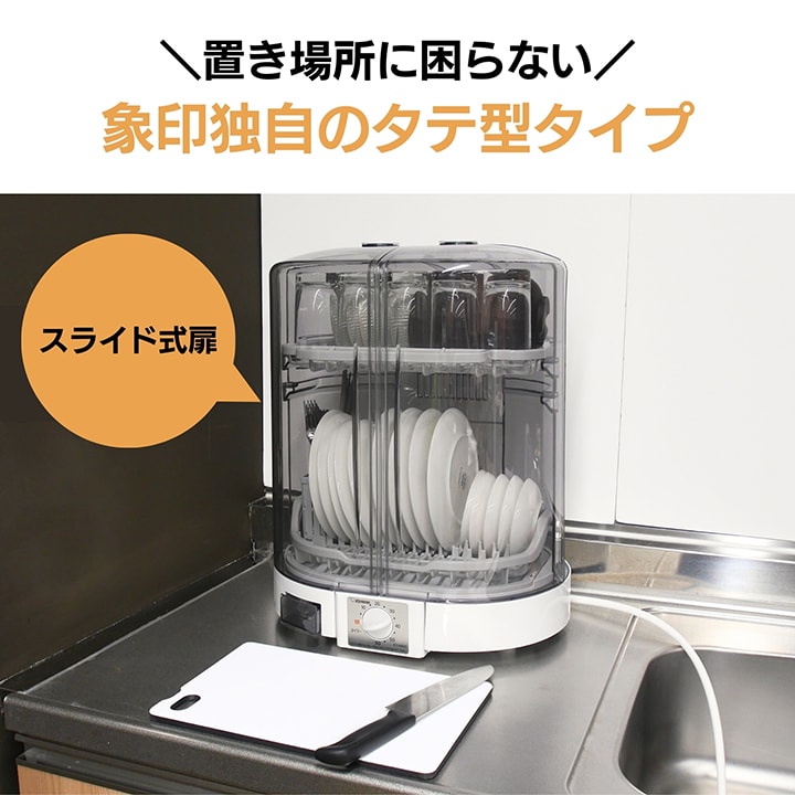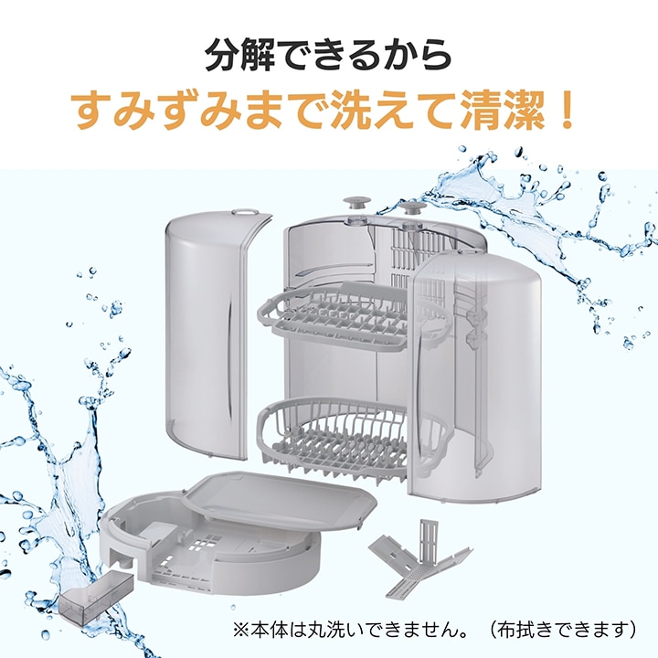 ・置き場所に困らない「省スペース・たて型」 ・食器に合わせて高さが調節できる「2段階調節上かご」 ・シンクから少し離れた場所にも設置が可能な「80cmロング排水ホースつき」 ・清潔!「Ag+抗菌加工水受け&はし立て」 ・分解して洗える!扉から底まで「とことんキレイ」 ・和食器などの深めの皿も立てて置ける「食器かご」 ・洗いやすい「分解式はし立て」 ・まな板乾燥OK(最大 幅21cm×長さ37cm×厚さ1.5cm) ・お玉やフライ返しなどのキッチンツールも吊るして乾燥できるフックつき ・高温80℃乾燥(吹き出し口温度) |