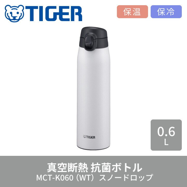 タイガー 抗菌ボトル MCT-K060 WT スノードロップ 600ml 水筒 ワンタッチ 子供 夢重力 真空断熱 ボトル マグボトル ダイレクト 保温 保冷 抗菌 おしゃれ