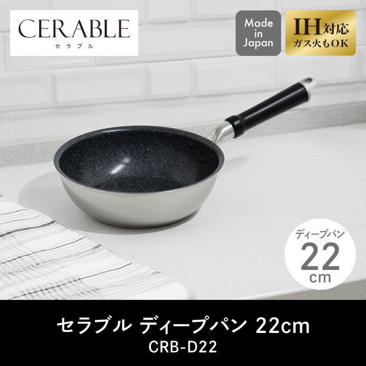 【期間限定 ふきんプレゼント中】セラブル ディープパン 22cm CRB-D22 ウルシヤマ金属 日本製 IH ガス こびりつかない 深型 フライパン