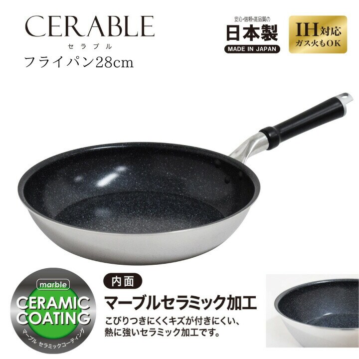 取っ手付き 取っ手 ガス火 コンロ ガスコンロ 直火 IH ih IH 電磁調理器 ラジエントヒーター シーズヒーター ハロゲンヒーター プレートヒーター オール熱源対応 スピード加熱 家庭 家庭用 手軽 キッチン 台所 調理 料理 炊事 食事 食卓 キッチングッズ キッチン用品 キッチン雑貨 2層 アルミ アルミニウム ステンレス 木 木製ハンドル セラミック マーブルセラミック加工 セラミック加工 焦げ付きにくい 焦げつきにくい 傷が付きにくい 傷がつきにくい 熱に強い 軽い 軽量 日本 国産 made in japan JAPAN UMIC ウルシヤマ ウルシヤマ金属工業 漆山 漆山金属 漆山金属工業 送料無料 CERABLE シルバー ブラック 黒 28センチ 28センチ 28cm サイズ 大き目 大きめ 大きい