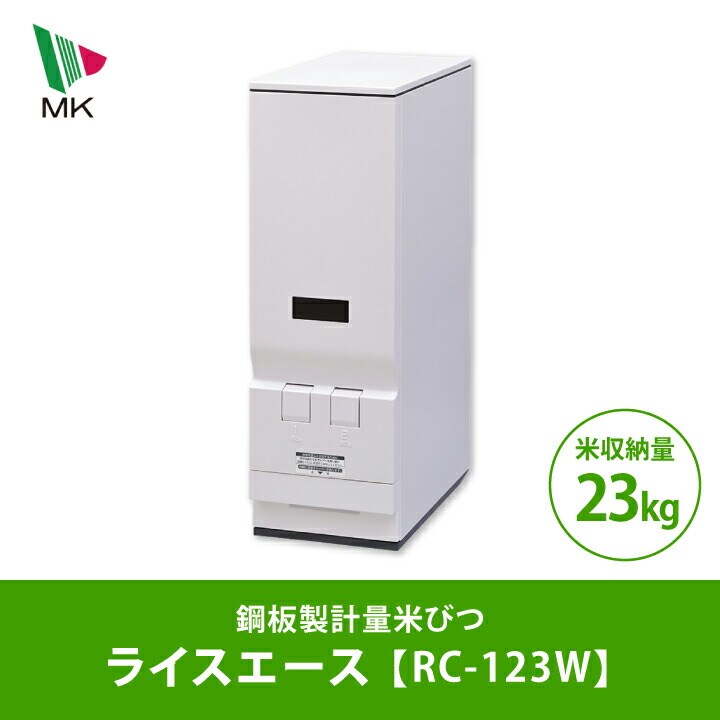 エムケー精工 鋼板製 計量米びつ ライスエース RC-123W 計量 米びつ 米収納量 23kg スリム 残量確認 無洗米アタッチメント 2レバータイプ 幅210mm ストッパー付 おしゃれ 耐腐食性 同梱不可